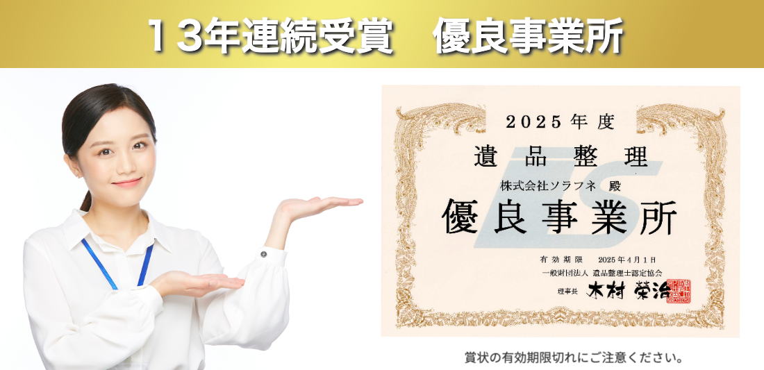 片づけのプロとして遺品整理士優良事業所に13年連続で認定されております。(全国TOPタイ)